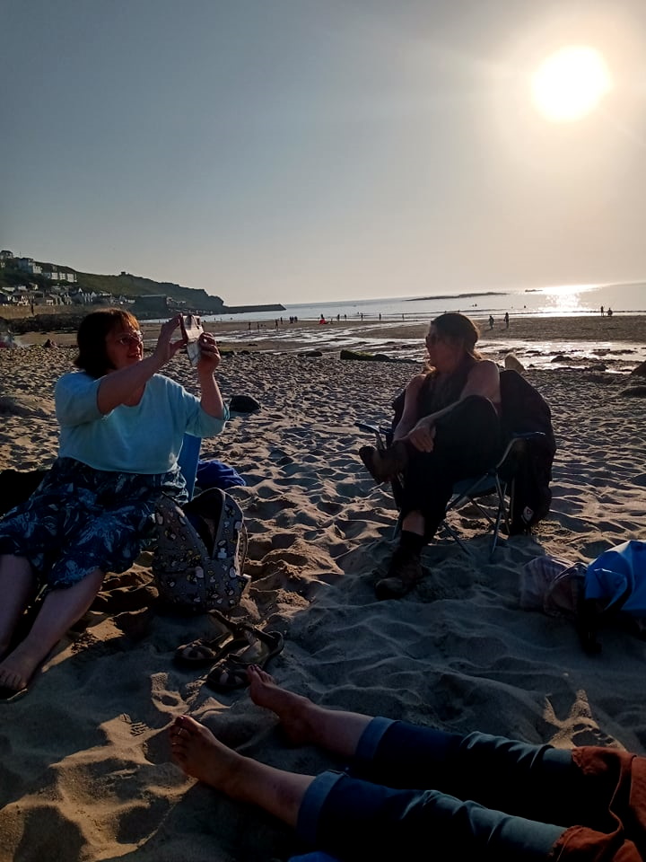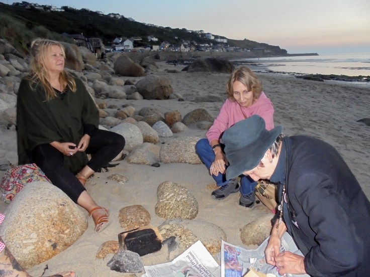 We visited Sennen Beach and watched the deep red sun in the sky as it descended over the sea. The group members live inland and rarely get an opportunity to experience wonderful energies from the sea in Switzerland.
